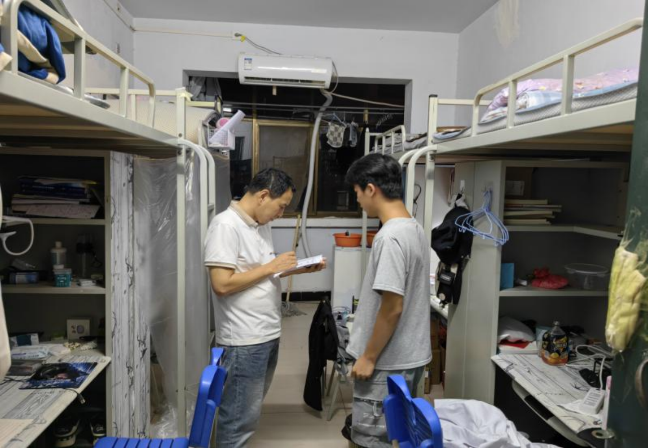 7月5日晚,公司领导、老师深入走访员工宿舍,仔细查看住宿环境与安全设施状况,重点提醒同学们严格遵守离校假期安全注意事项,老师们特别强调,要结伴复习、生活,相互照应,按时报备留校动向。