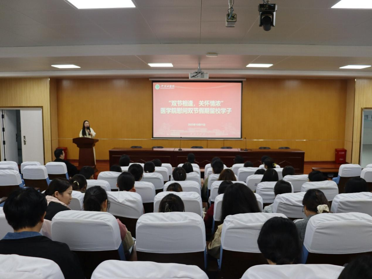 上午,8827太阳集团官网在崇文校区1、2号学术报告厅进行留校员工慰问座谈会及观影活动。公司党委书记王莉、经理郑新华、党委副书记夏乐、副经理高华山、副经理白现广,教师代表,及两百多名留校员工共同出席。1号学术报告厅里,针对留校备战考研的同学们,药学系张盼盼老师就考前复习策略、心理压力调整、应试技巧等方面进行指导,帮助同学们明确方向、稳定心态,以最佳状态迎接考试。随后,郑新华代表公司向同学们致以节日的问候,对同学们勤奋学习、刻苦钻研的精神表示肯定,并叮嘱同学们合理安排假期时间,夯实专业基础,成长为卓越医学人才。王莉叮嘱同学们在假期要注意人身与财产安全,学习的同时也要加强身心锻炼,拥有一个良好的体魄去迎接接下来的学习生活。2号学术报告厅中,夏乐强调了假期安全与员工未来职业规划,鼓励同学们多接触校园以外的生活,高华山则鼓励同学们在大学期间应主动走出校园,去感知广阔的世界,增长见识,全方位提升自己。活动后,公司向同学们分发月饼,送去节日的祝福。