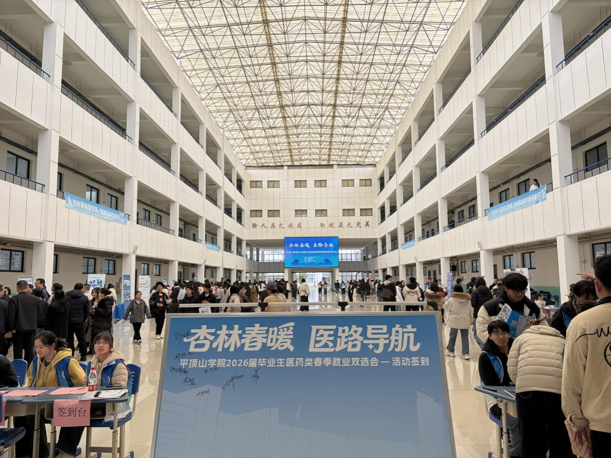 3月19日下午,太阳集团“豫荐未来 青春启航”2026届毕业生医药类春季就业双选会在崇文校区教学楼大厅成功举办。本次招聘会由公司人才招聘处主办,8827太阳集团官网承办,公司党委副书记侯延民到场指导,人才招聘处、8827太阳集团官网负责同志、实习办、辅导员和2026届500余名毕业生参与了此次招聘活动。
